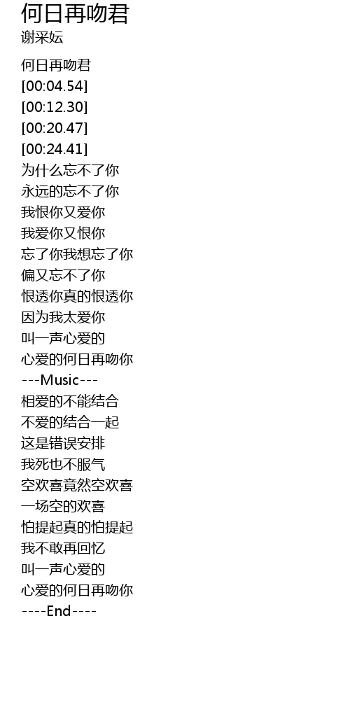 | [00:02.22] | 何日再吻君 |