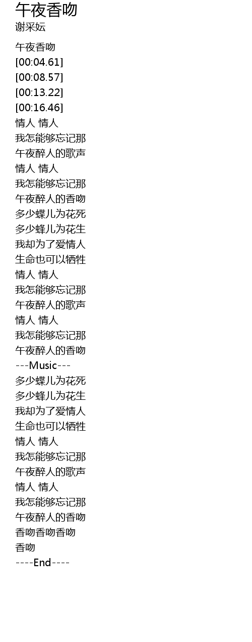 | [00:42.30] | wu ye zui ren de xiang wen |