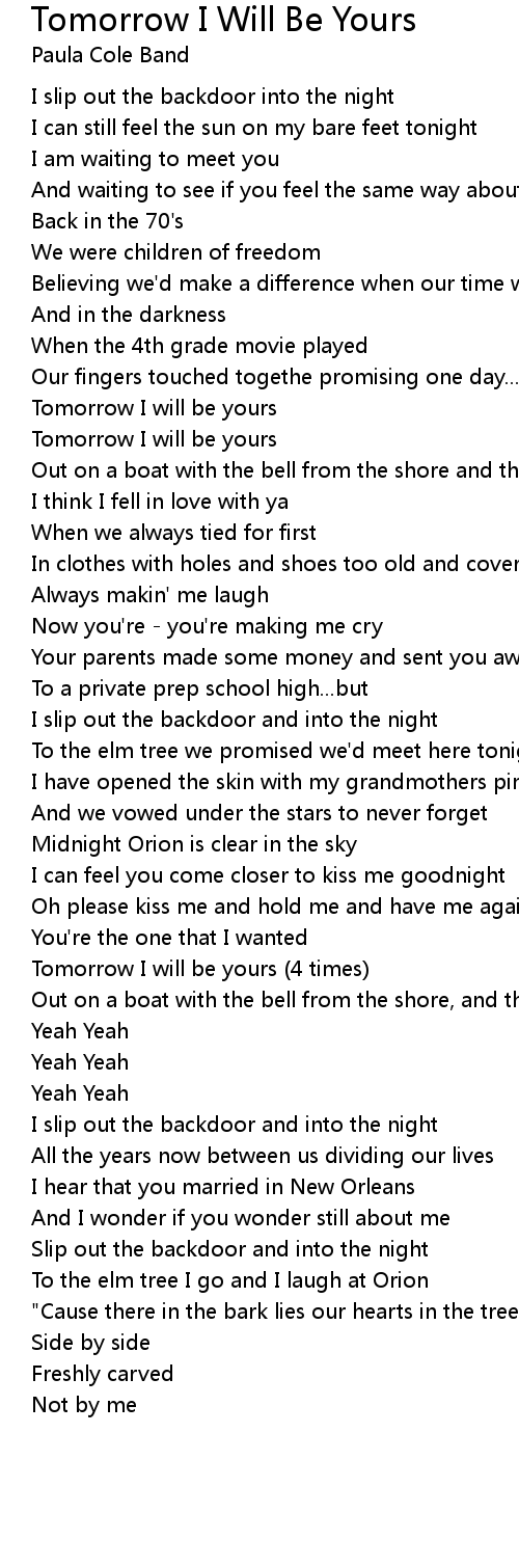 Tomorrow I will be yours |