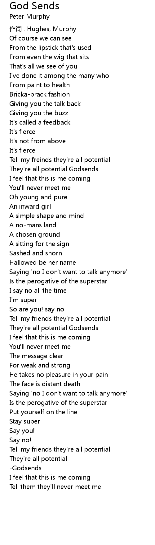 | Song | God Sends |