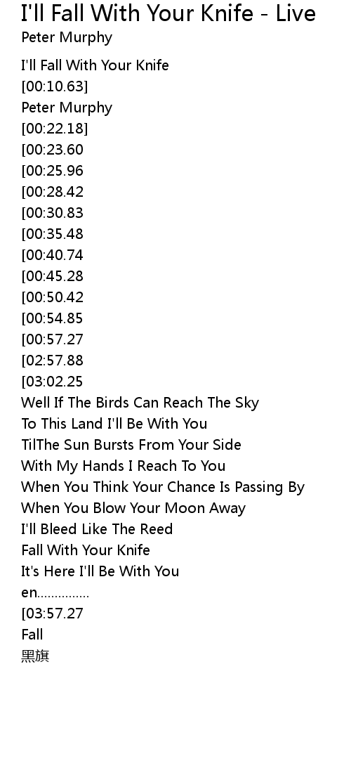 | [01:56.04] | Fall With Your Knife |