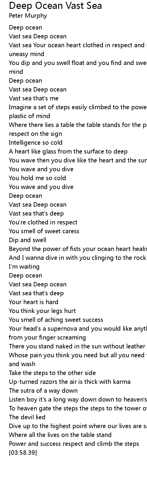 Vast sea Your ocean heart clothed in respect and sweet caress my uneasy mind |