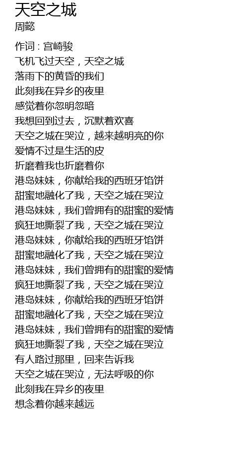 | tián mì dì róng huà le wǒ, tiān kōng zhī chéng zài kū qì | |