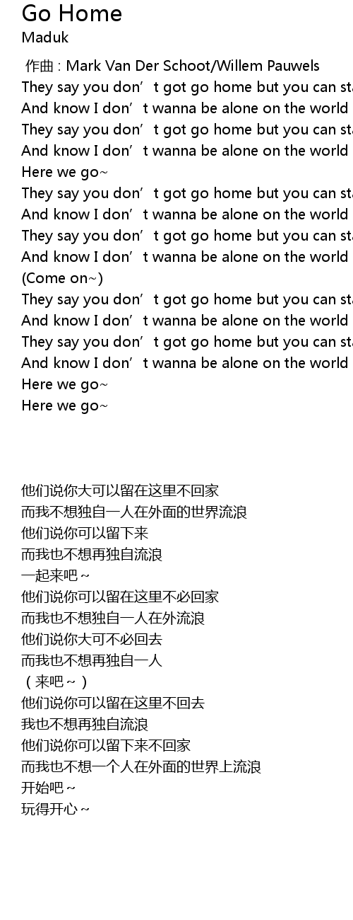 | [00:31.5] | They say you don’t got go home but you can stay here |