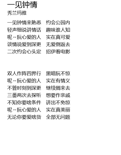 | yī jiàn zhōng qíng lái shú xī yuē huì gōng yuán nèi | |