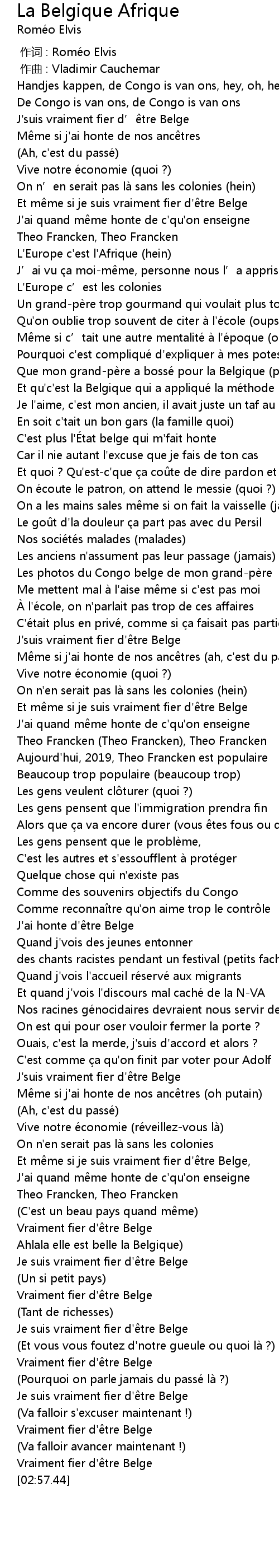 | [02:53.40] | Vraiment fier d' tre Belge |
