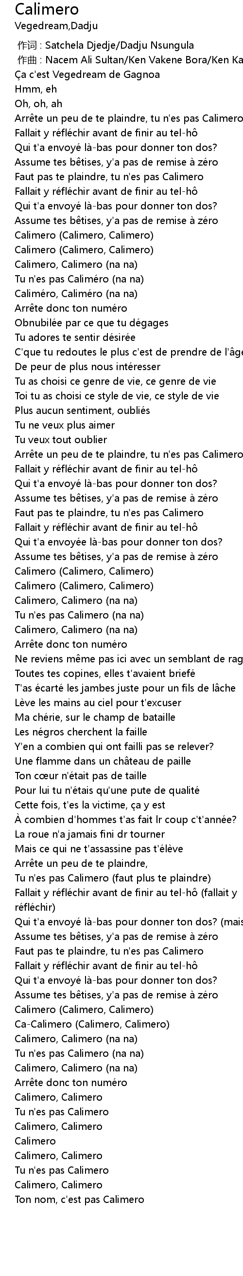 | [02:35.84] | Tu n' es pas Calimero faut plus te plaindre |