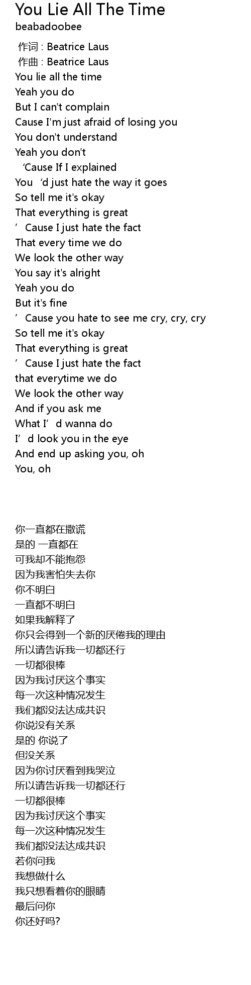 | [00:30.953] | You lie all the time |
