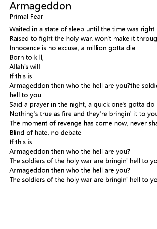 Armageddon then who the hell are you?the soldiers of the holy war are bringin' hell to you |