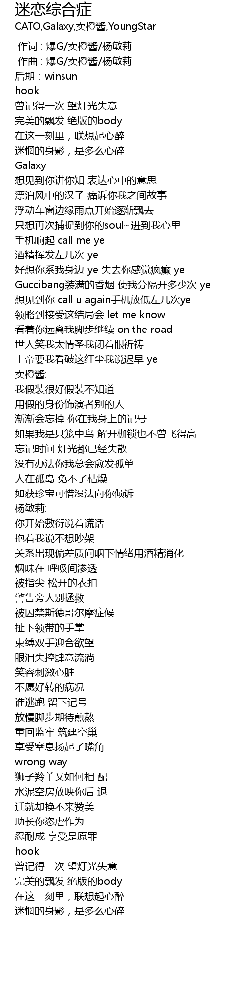 | [00:00.000] | 作词 : 爆G/卖橙酱/杨敏莉 |