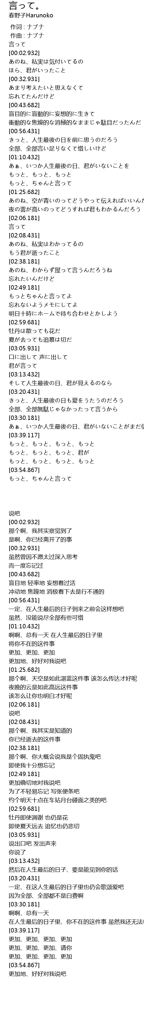 | [01:06.182] | 全部、全部言い足りなくて惜しいけど |
