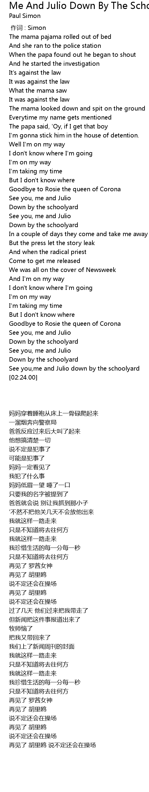 | [02:13.34] | See you,me and Julio down by the schoolyard |