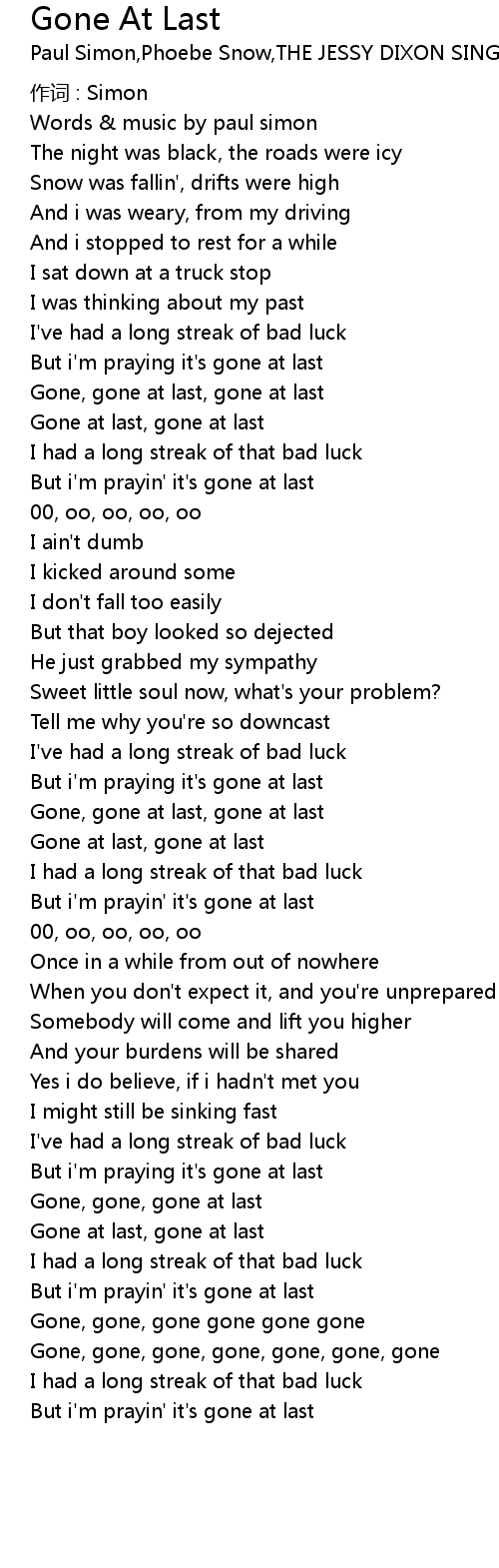 | Gone, gone, gone, gone, gone, gone, gone | |