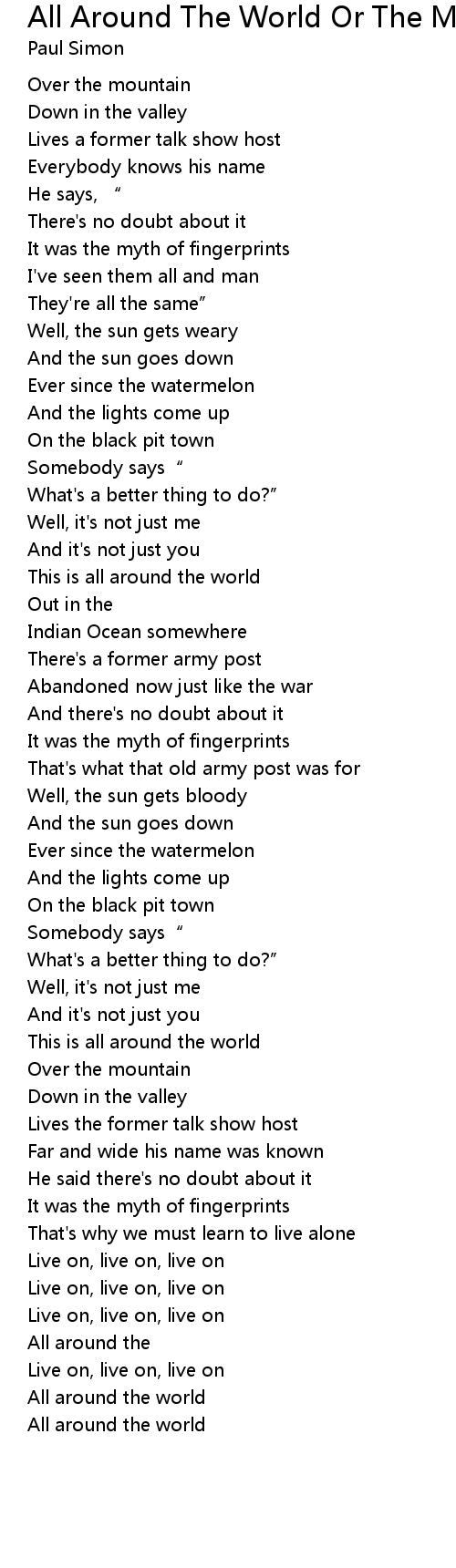 | Song | All Around The World Or The Myth Of Fingerprints (Early Version) - early version |