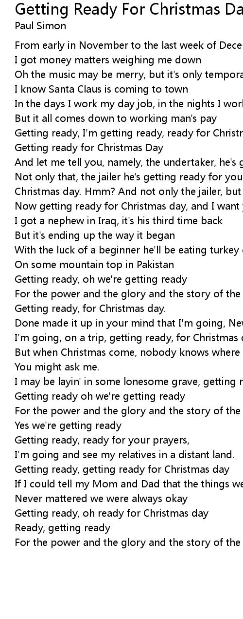 Getting ready, I'm getting ready, ready for Christmas Day |