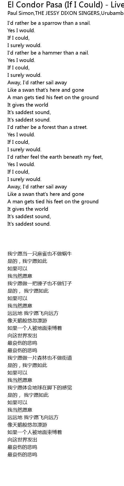 I'd rather be a sparrow than a snail. |