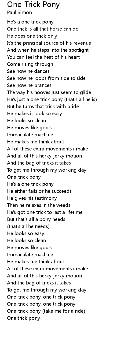 One-trick pony, one trick pony |