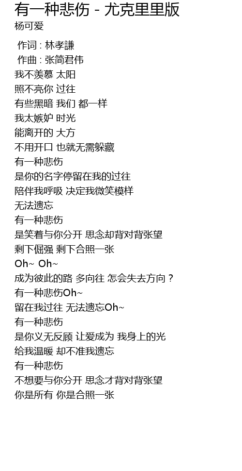 | [02:28.60] | yǒu yī zhǒng bēi shāng Oh |