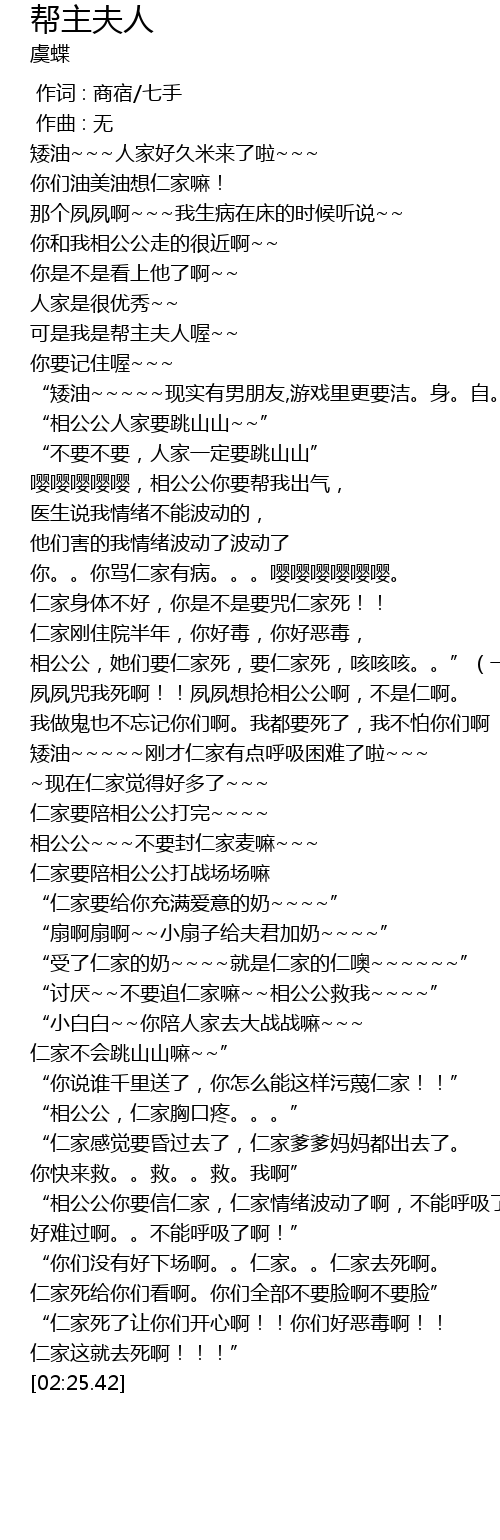 | [00:20.42] | 可是我是帮主夫人喔~~ |