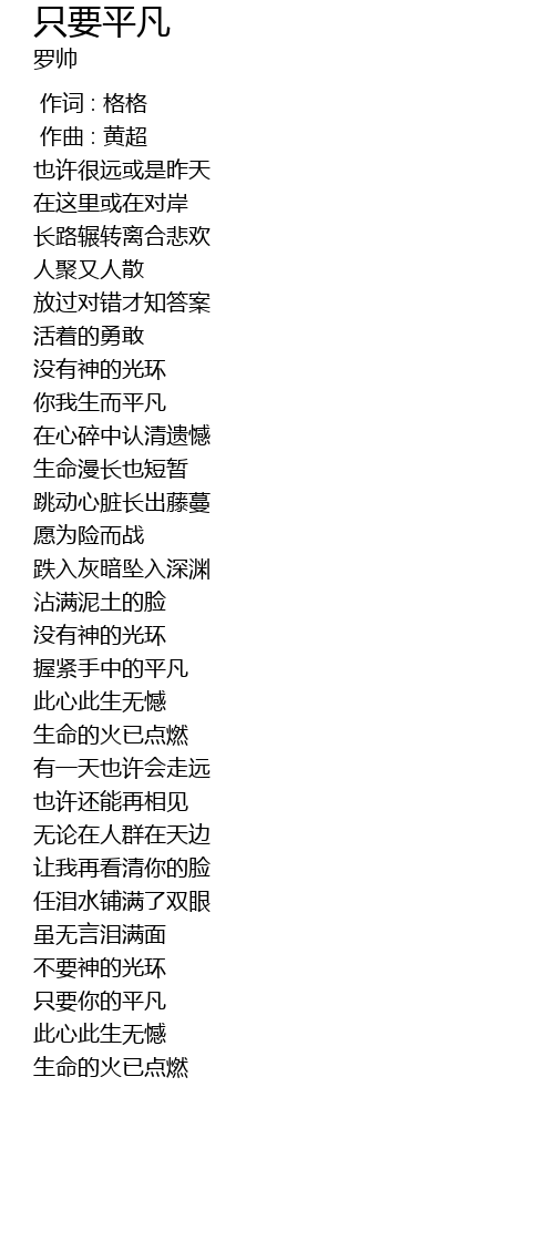 | [01:49.689] | zhǐ yào nǐ de píng fán |