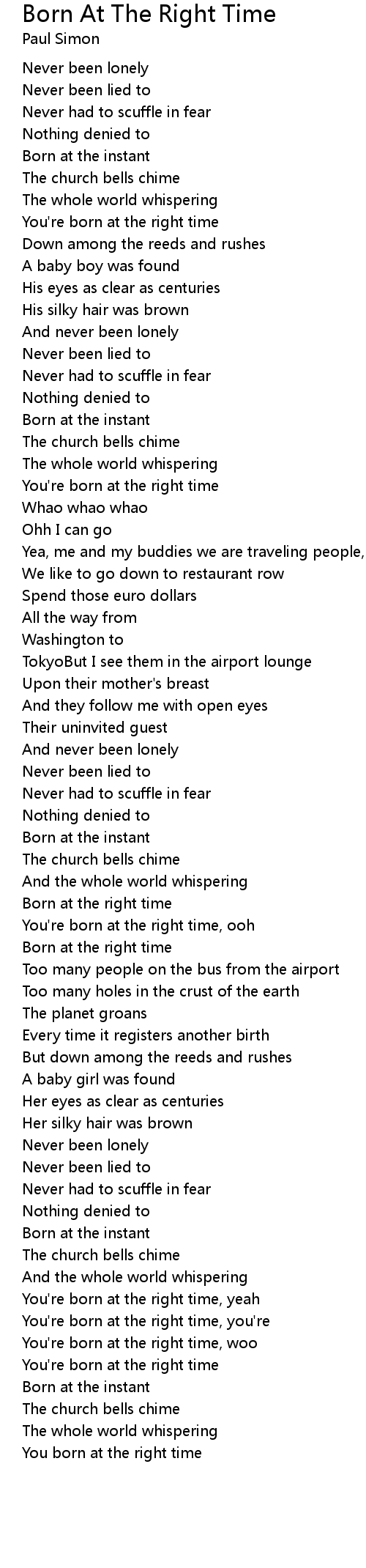 You're born at the right time, you're |