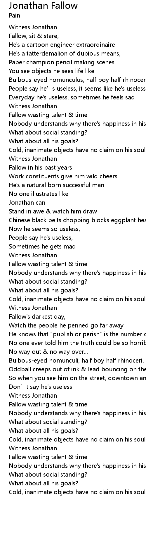 | Everyday he's useless, sometimes he feels sad | |