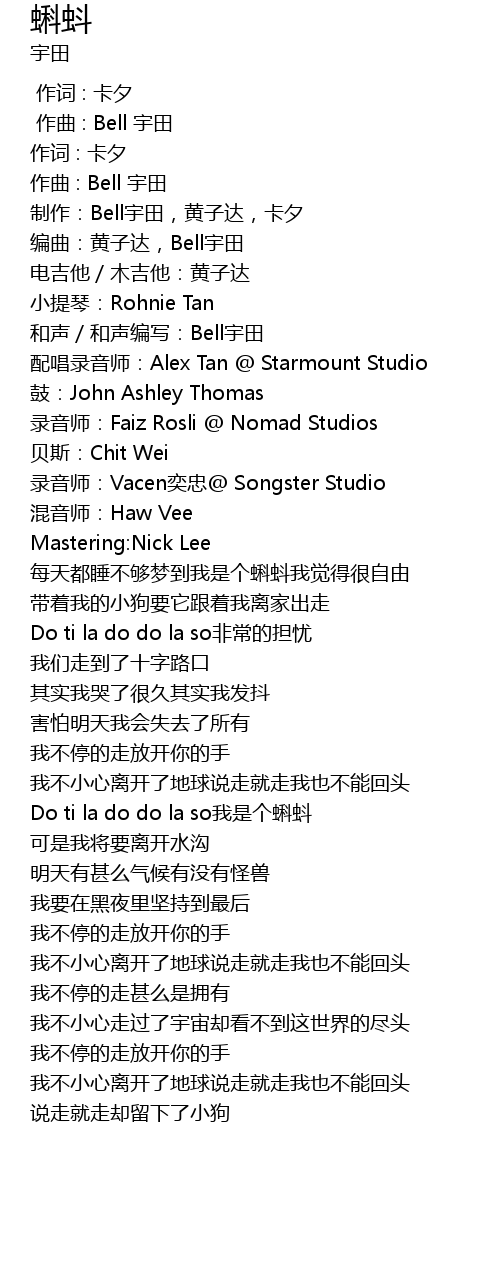 | [00:02.767] | 配唱录音师:Alex Tan @ Starmount Studio |