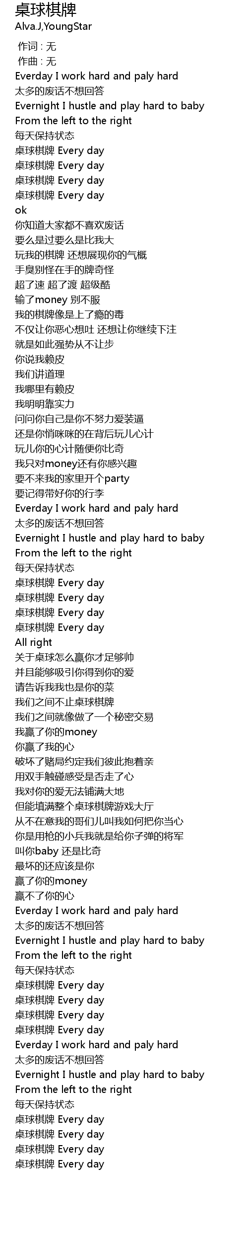 | [00:13.697] | Evernight I hustle and play hard to baby |