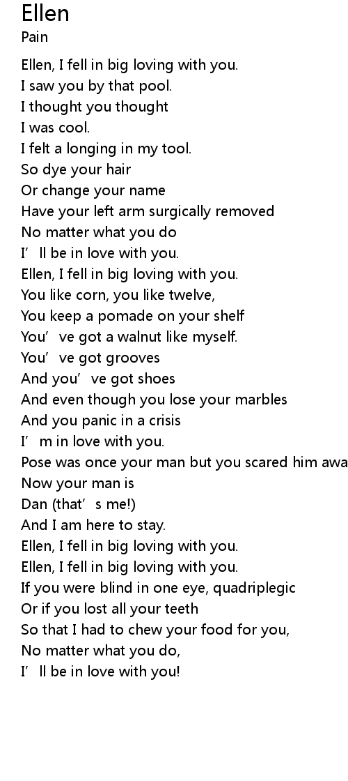 | Ellen, I fell in big loving with you. | |