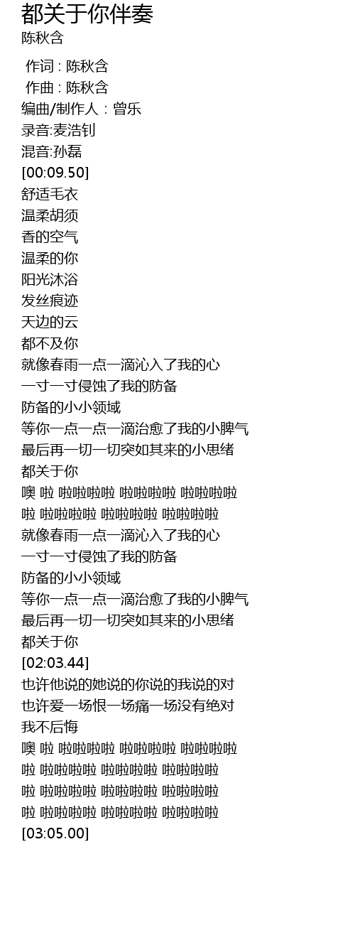 | [00:03.00] | 编曲/制作人:曾乐 |