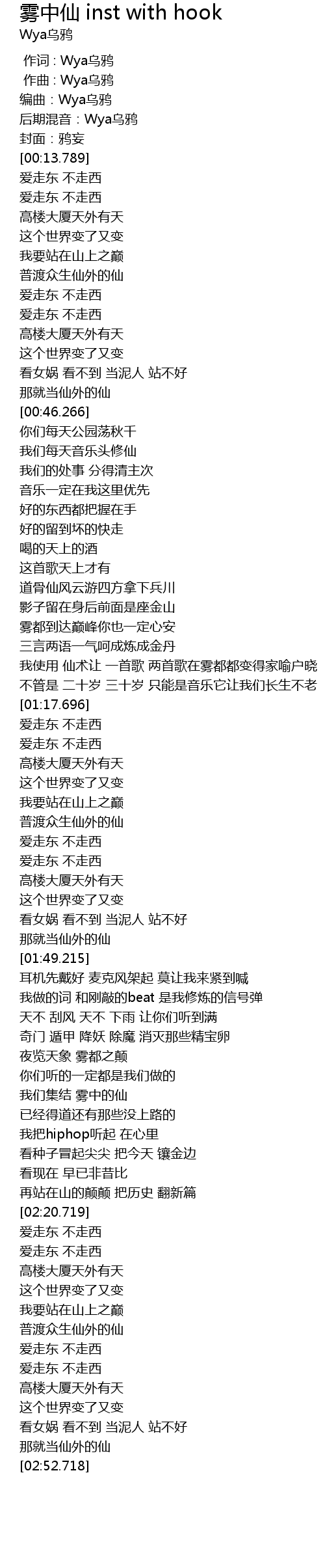 | [00:03.548] | 编曲:Wya乌鸦 |