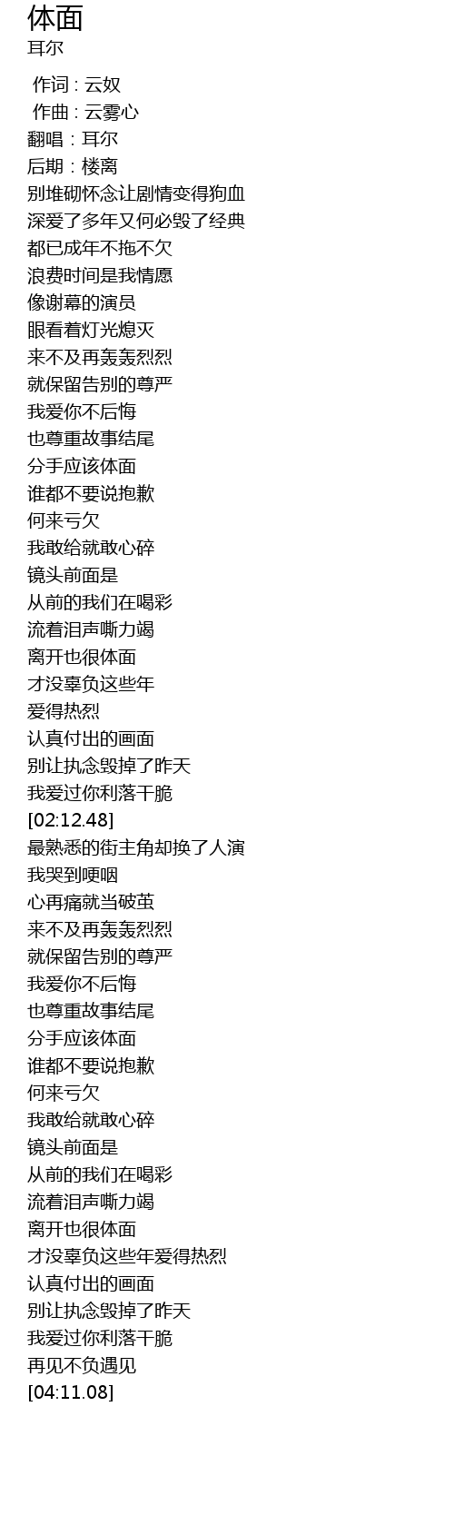 | [03:41.01] | 离开也很体面 |