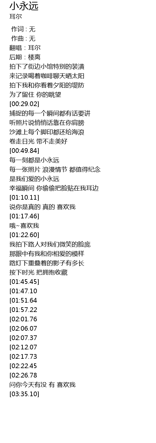 | [03:18.95][02:17.73] | 是我们爱的小永远 |