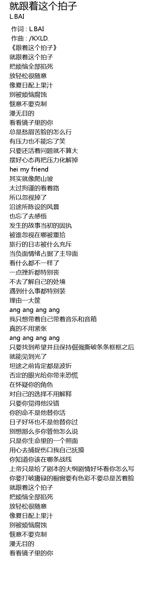 | [00:17.64] | jiù gēn zhe zhè gè pāi zi |