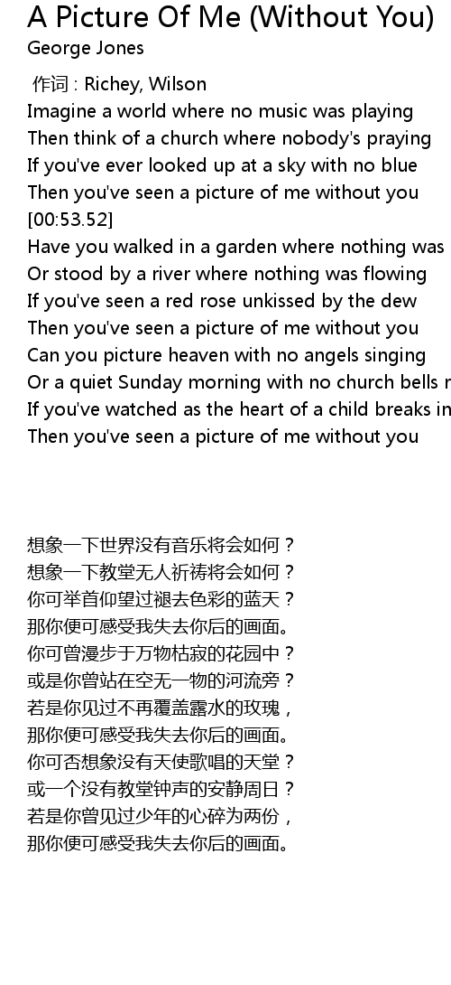 | [00:44.40] | Then you' ve seen a picture of me without you |