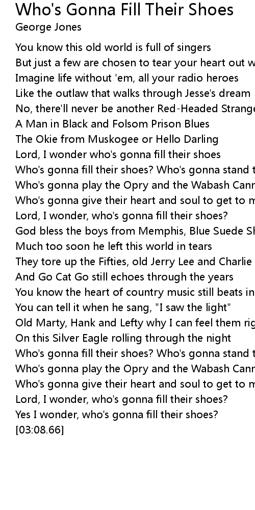 Who's gonna fill their shoes? Who's gonna stand that tall? |