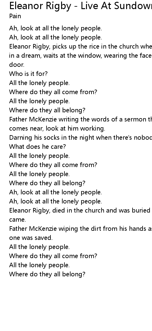 Eleanor Rigby, died in the church and was buried along with her name, nobody came. |