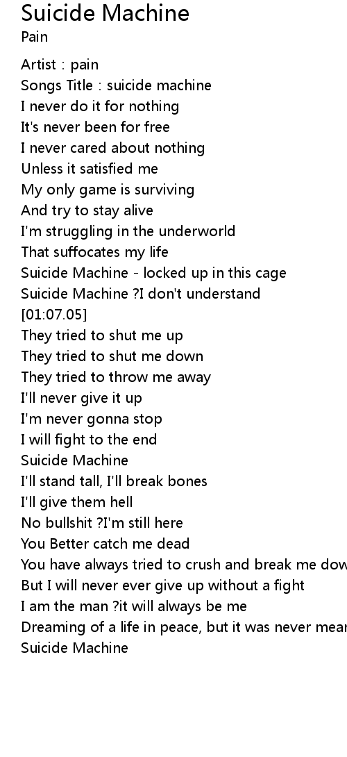 | [00:57.69] | Suicide Machine ? I don' t understand |
