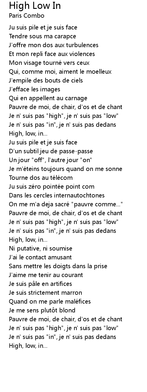 | Je n' suis pas "high", je n' suis pas "low" | |