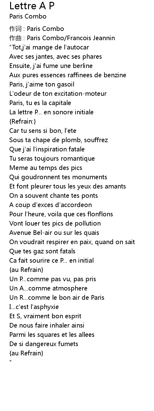 | Song | Lettre A P |
