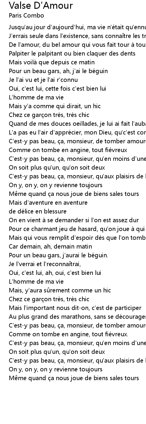 | C'est-y pas beau, ça, monsieur, de tomber amoureux | |