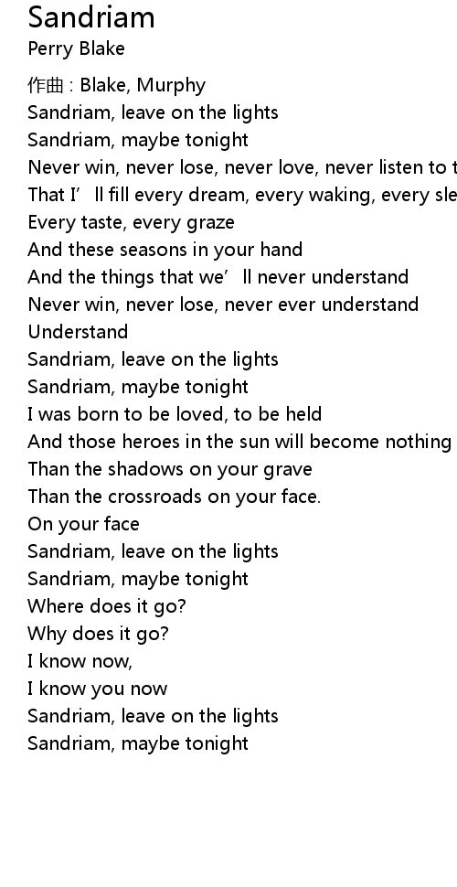 | Sandriam, leave on the lights | |