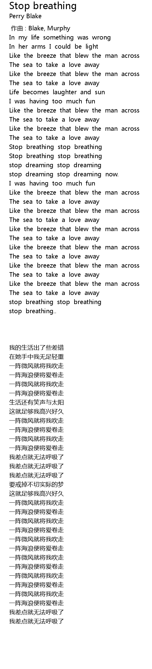 | Song | Stop breathing |