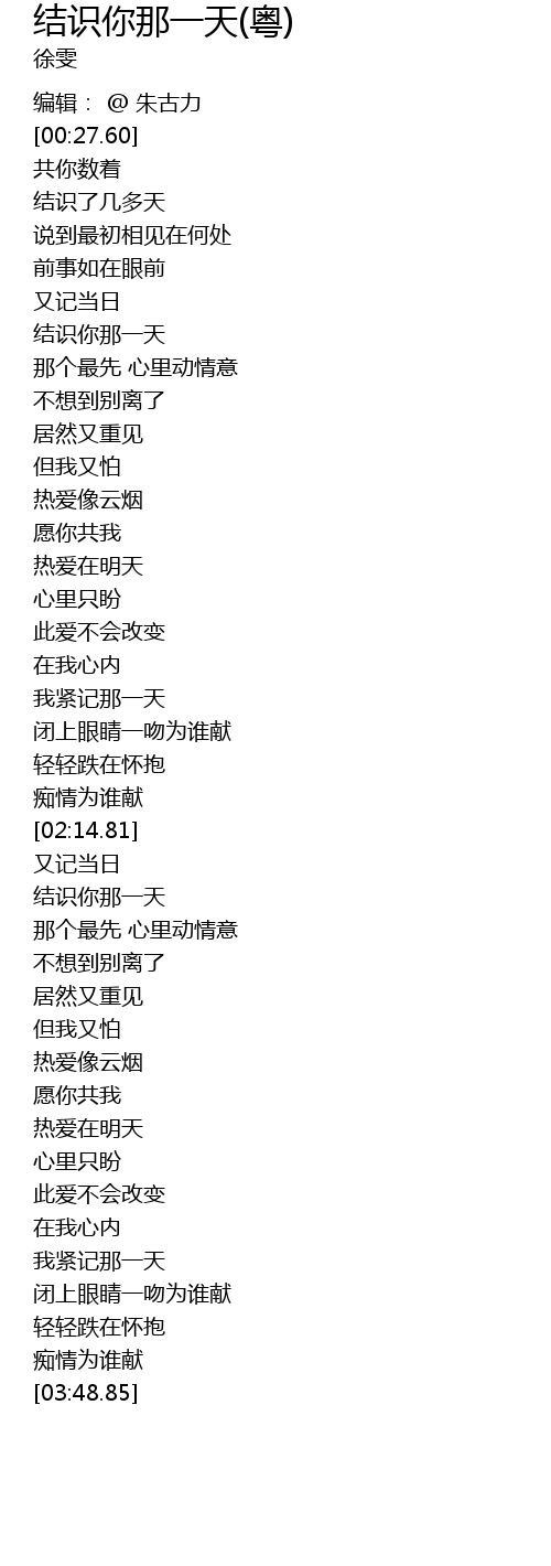 | [01:02.67] | jié shí nǐ nà yì tiān |