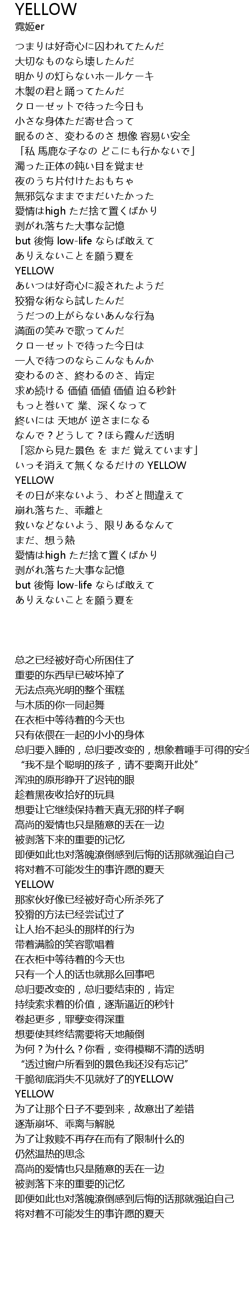 | [01:38.860] | いっそ消えて無くなるだけの YELLOW |