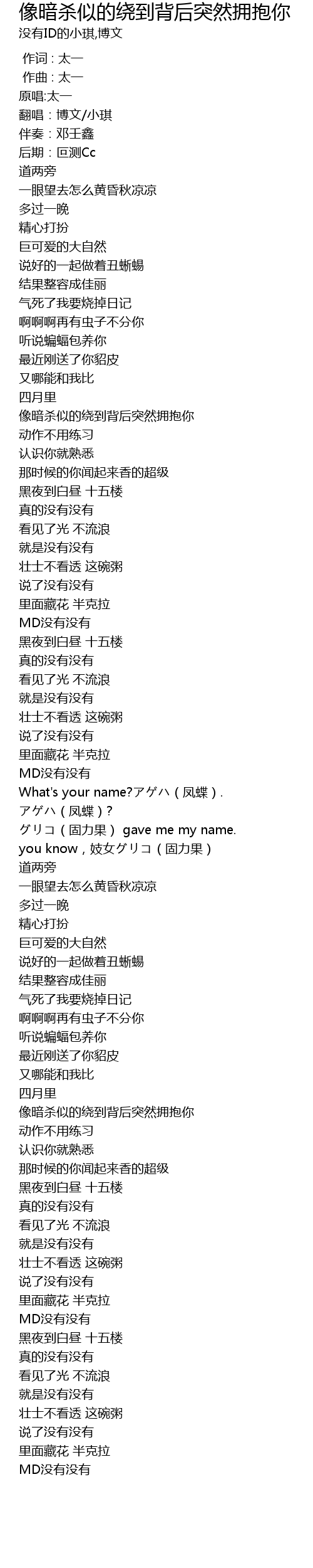 | [02:30.199] | 像暗杀似的绕到背后突然拥抱你 |
