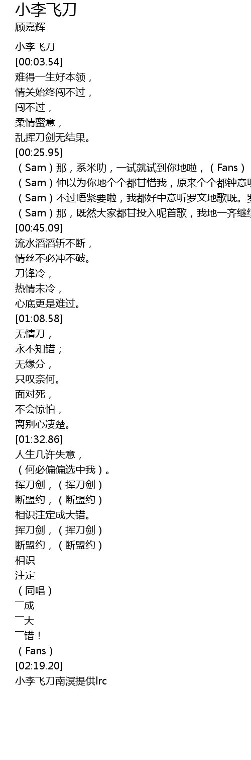 | [00:00.00] | xiǎo lǐ fēi dāo |