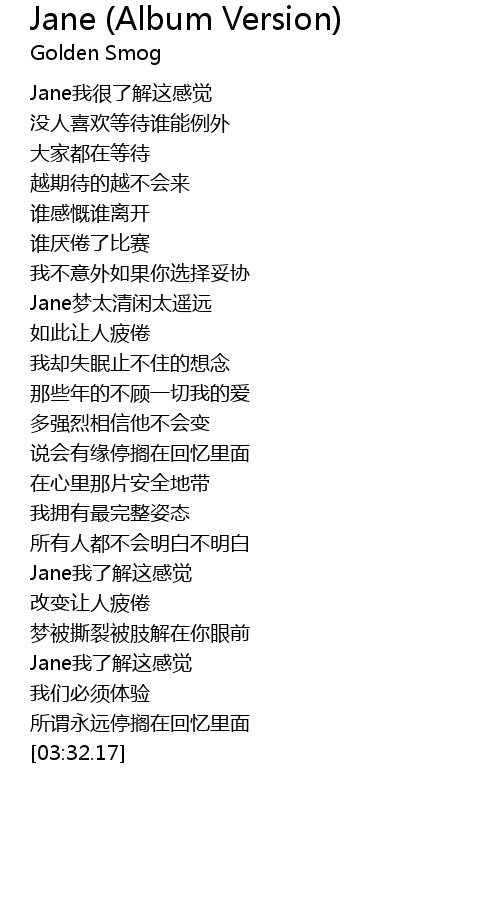 | [01:26.32] | Jane梦太清闲太遥远 |