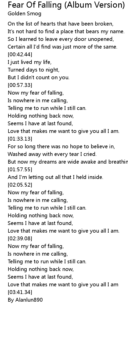 Now my fear of falling, |