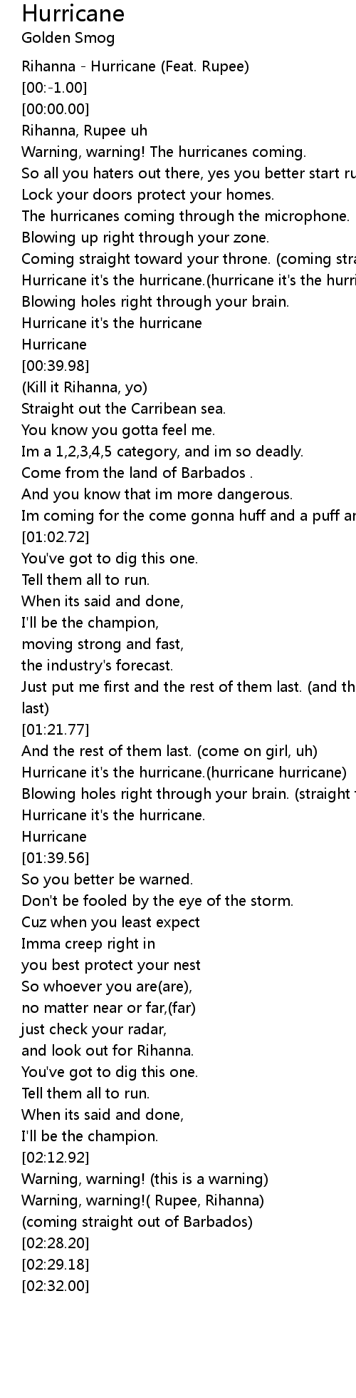 Hurricane it's the hurricane.(hurricane it's the hurricane) |